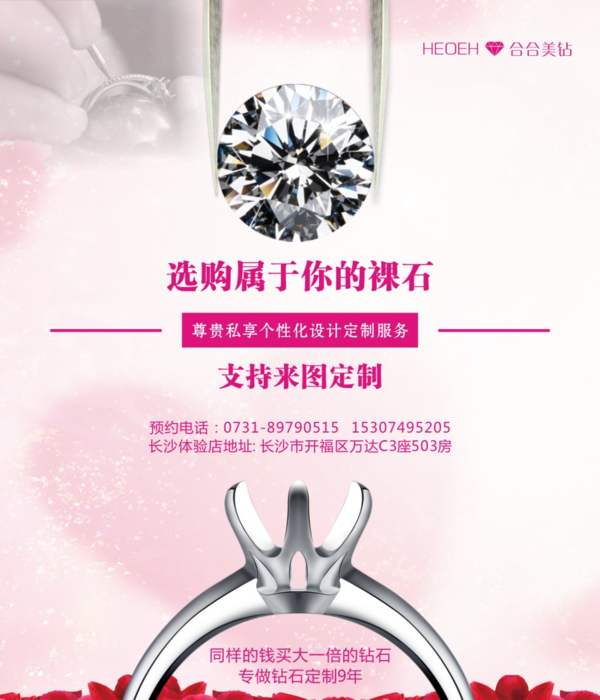 合合美钻作为摄影企业的战略合作伙伴,已经为上万对结婚新人提供了婚戒定制服务,尊崇“一生只送一人”之理念,专为幸福情侣定制赋予特殊爱情故事的婚戒品牌。 合合美钻专业从事钻石定制业务 HEOEH ︳合合美钻识钻、爱钻、惜钻,更尊重钻,似乎每一个合合人都是产品偏执狂,我们精心为您设计你们独特爱情故事的专属版型,用心为每一枚婚戒甄选高标准的天然钻石,以最卓越的手工工艺打造皇室级珠宝。从运输到包装以及每一次精细的保养,将“爱和感恩”融入我们的每一个细节。鉴于对我们偏执打造出来产品的尊重,我们萌生“一生只送‘一人’”的理念,对客户提出了凭身份证实名购买,一生只送“一人”以及每一位客户必须诉说他们爱情故事的特殊要求,每一位客户一生只能送给钟爱的“一人”。我们的目的只有一个,将我们用心打造的唯一臻品送给唯一的人,而后这些“唯一、偏执”的钻戒以及它独有的爱情、友情故事和四叶草的传说在“合子(我们的粉丝)”间疯狂流传,让 HEOEH ︳合合美钻以其独有的内涵以及美丽闪耀世人!